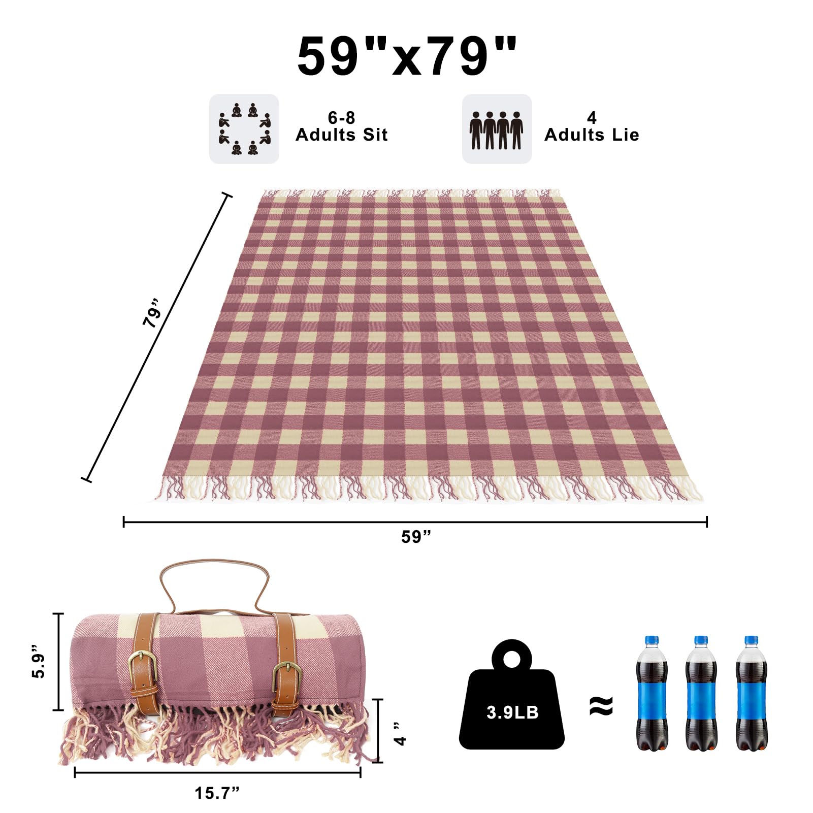 - Customizable and Portable: Add a personal touch with optional customization, such as monograms or patterns. Plus, the mat’s lightweight design and classic vegan leather strap make it easy to carry, ideal for both indoor and outdoor use—be it picnics, beach outings, or backyard parties.